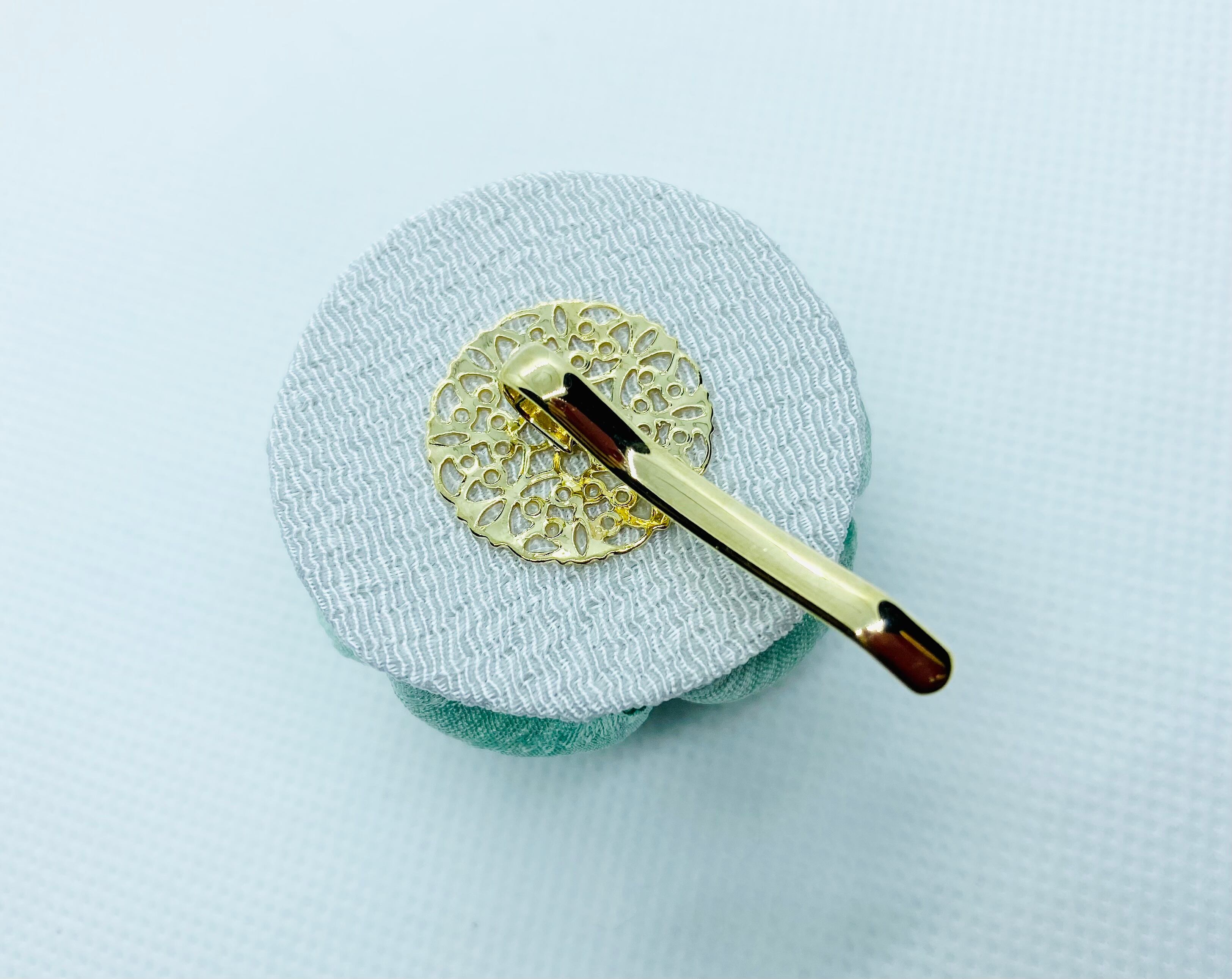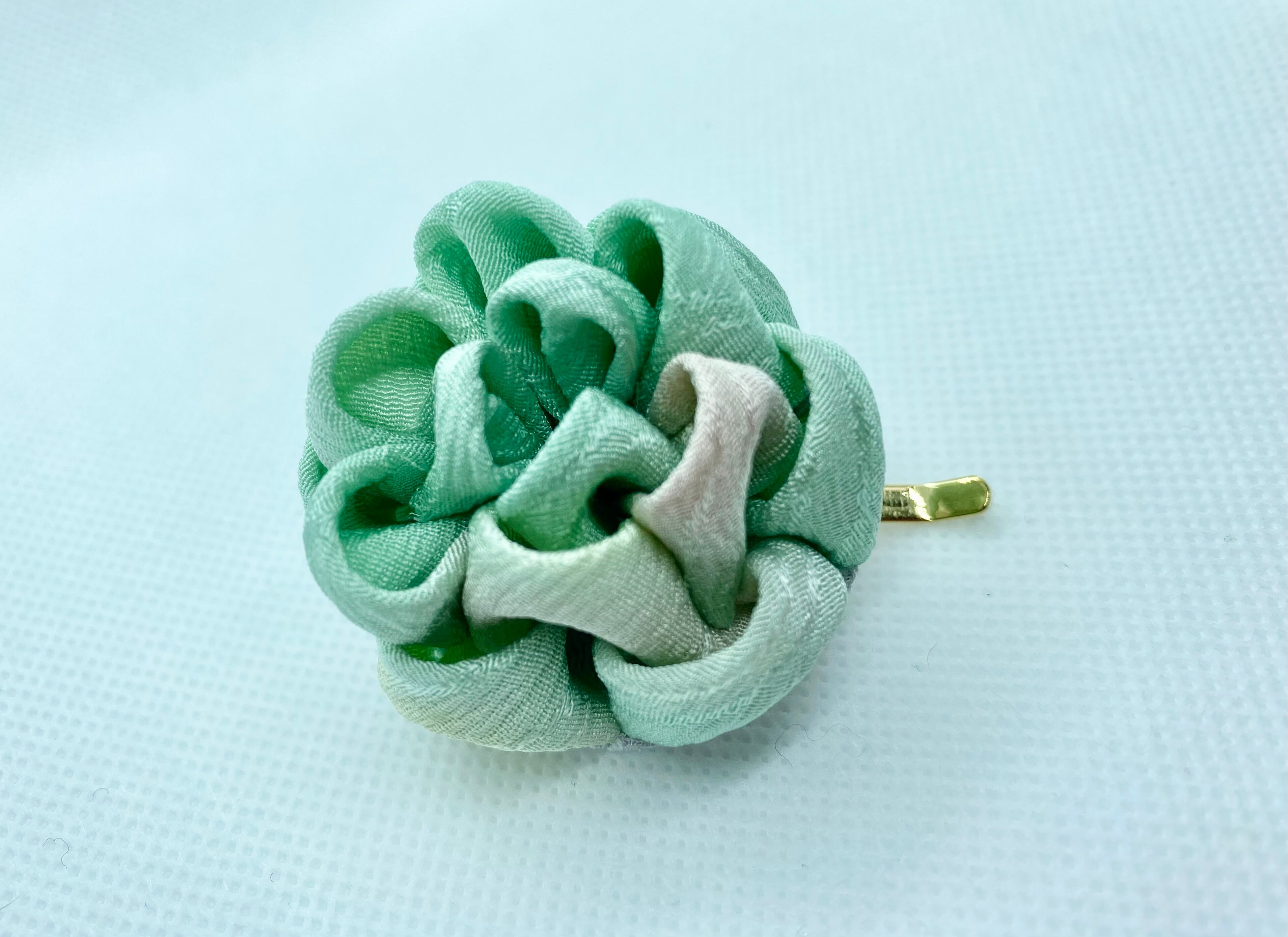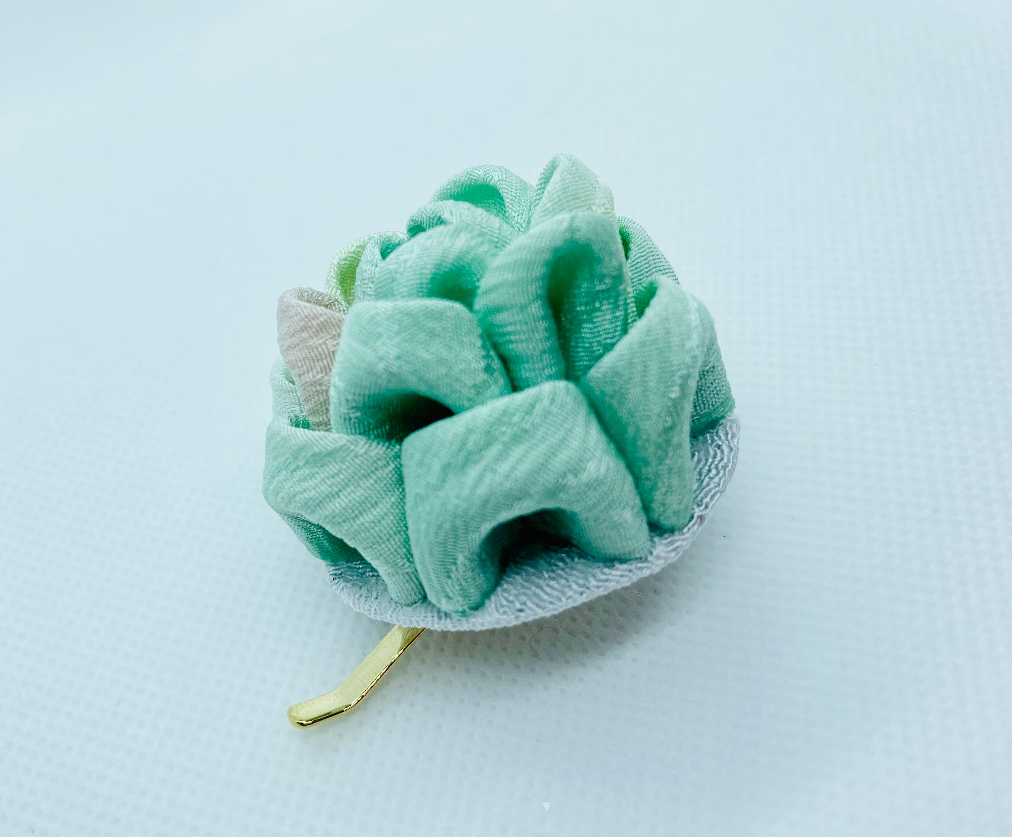 カメリア(碧)/ ポニーフック / 正絹 / つまみ細工